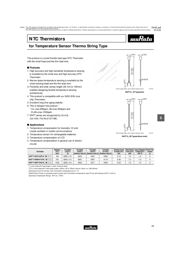 Thermistor NTC 100KOhm 5% 2-Pin 0402 Paper T/R