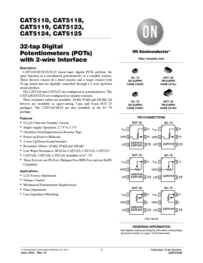 Digital Potentiometer 32POS 100KOhm Single 6-Pin SOT-23 T/R