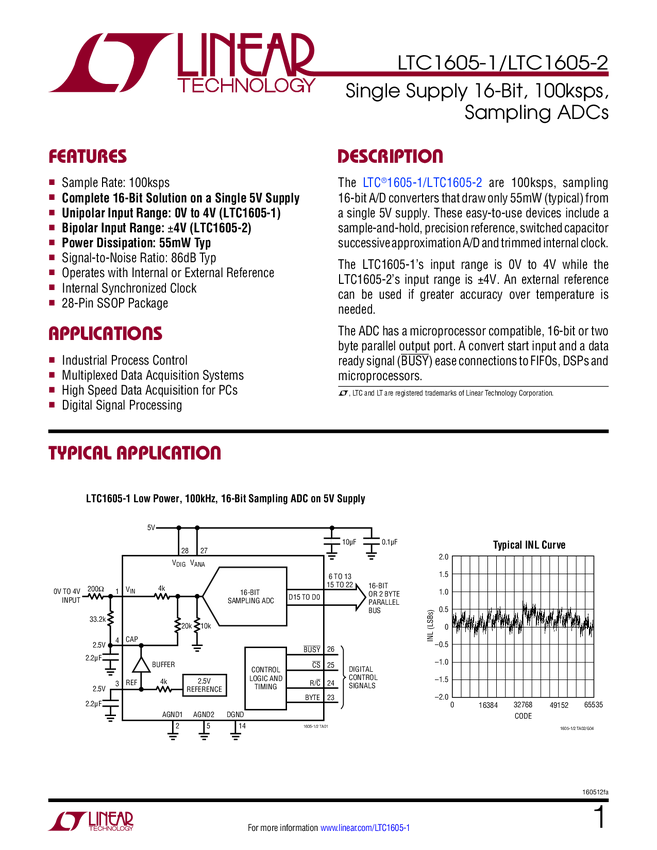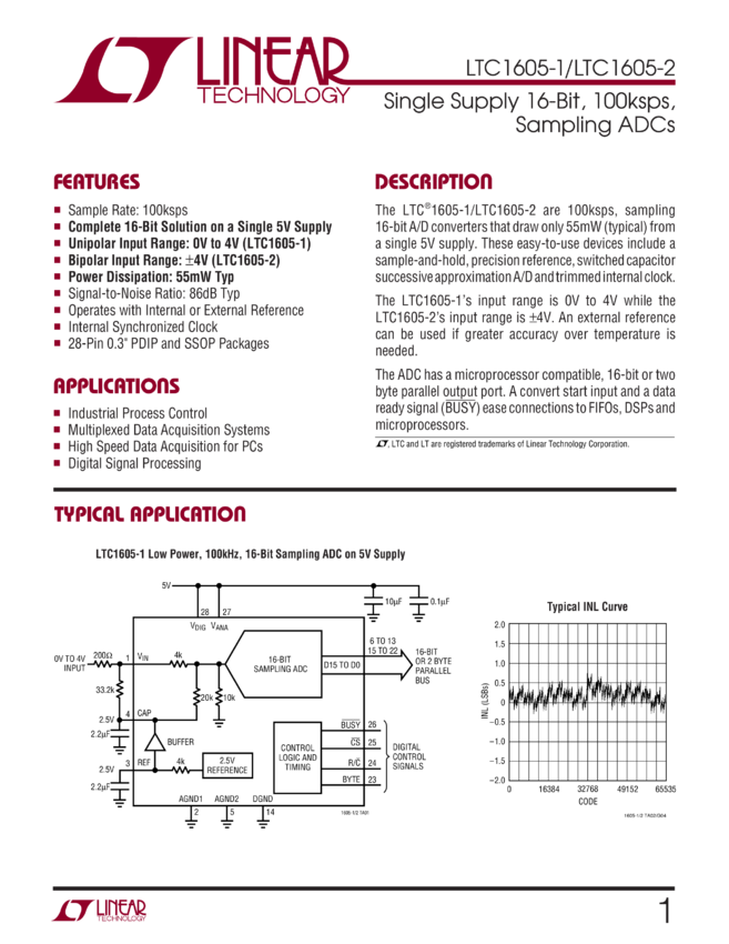 16-Bit, 100ksps, Sampling ADC