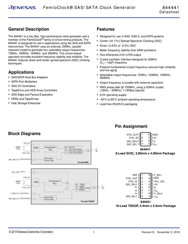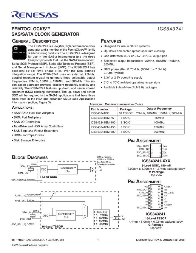 FemtoClock SAS/SATA Clock Generator