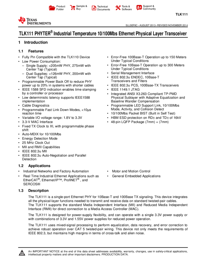 PHY 1-CH 100Mbps 48-Pin LQFP T/R