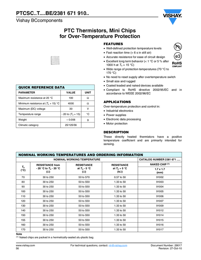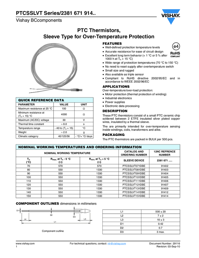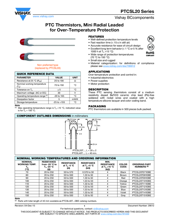 Thermistor PTC 100Ohm 2-Pin Bulk