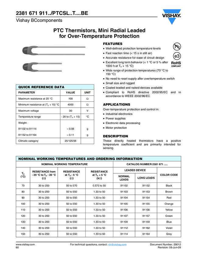 Thermistor PTC 100Ohm 2-Pin Radial Bulk