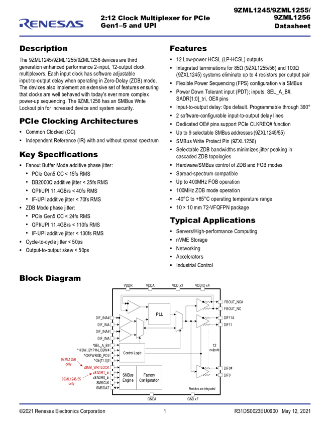 2:12 PCIe Clock Mux Gen1-5, Zo = 100ohm