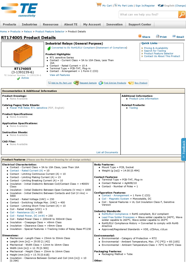 Electromechanical Relay SPST-NO 15A 5VDC 100Ohm Through Hole
