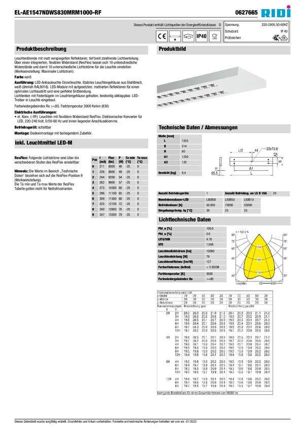 Oświetlenie wewnętrzne LED RIDI 827853 827853 79 W 10100 lm