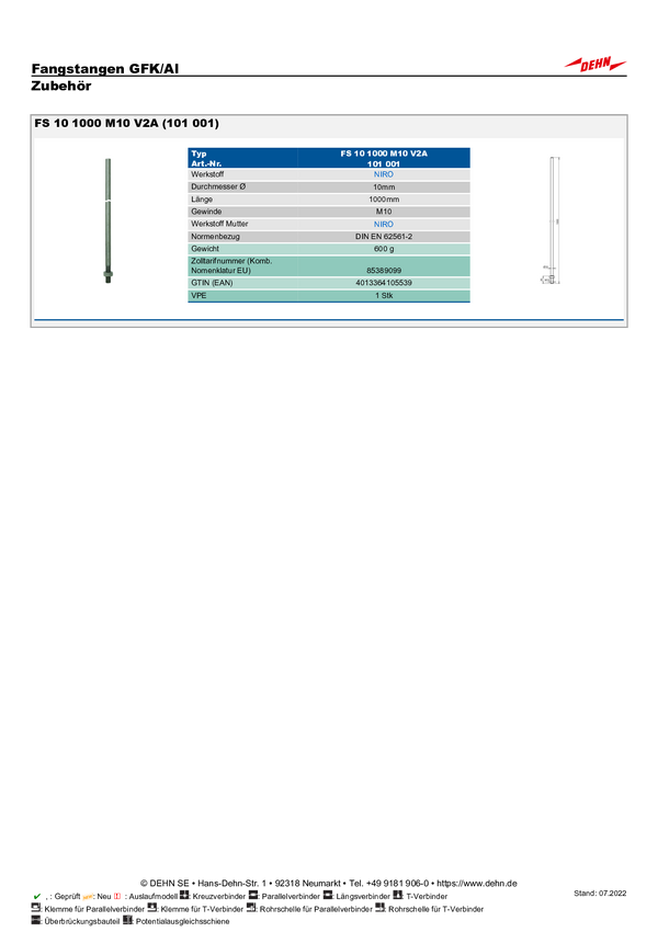 DEHN 101001 FS 10 1000 M10 V2A Wskazówka dotycząca łapania 1 szt.