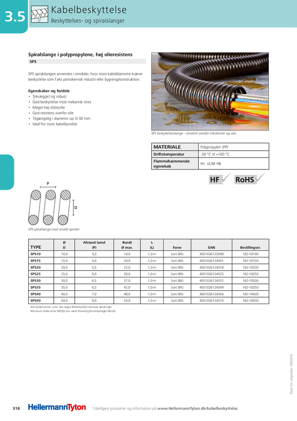Wąż spiralny HellermannTyton SPS10-PP-BK, czarny, 1 m