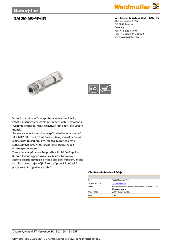 Złącze Weidmüller SAIBM-M8-4P-(IF) 1010090000 1 szt.
