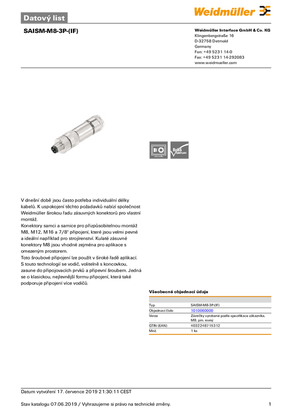 Złącze Weidmüller SAIBM-M8-3P-(IF) 1010080000 1 szt.