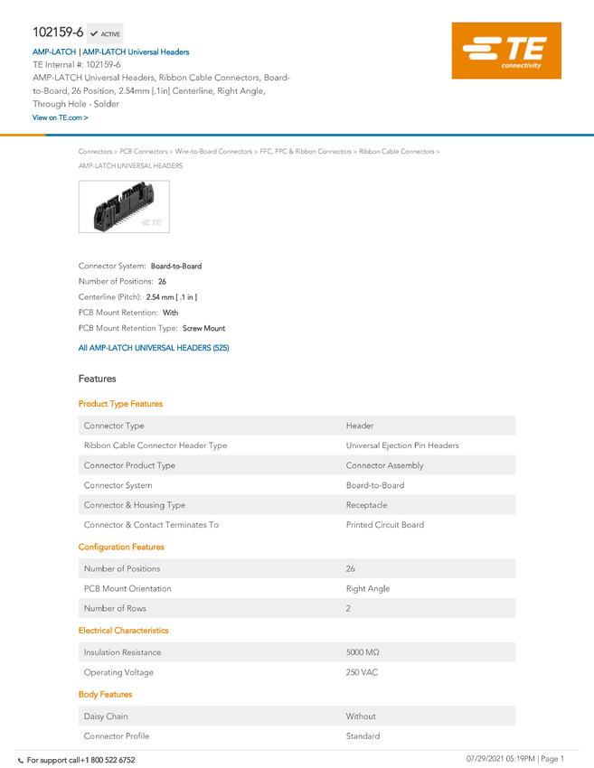 TE Connectivity 102159-2 TE AMP AMP-LATCH Universal Headers, 1 szt.