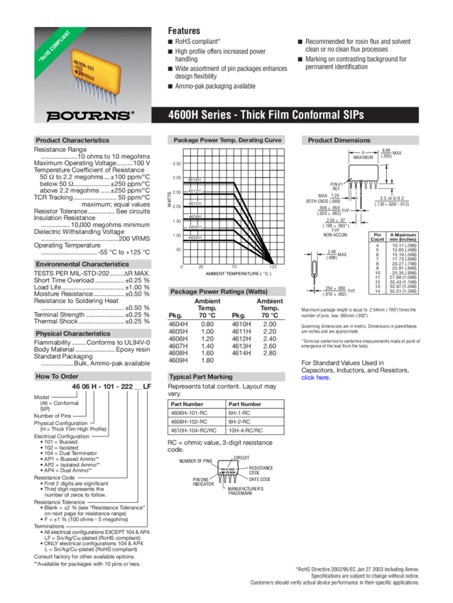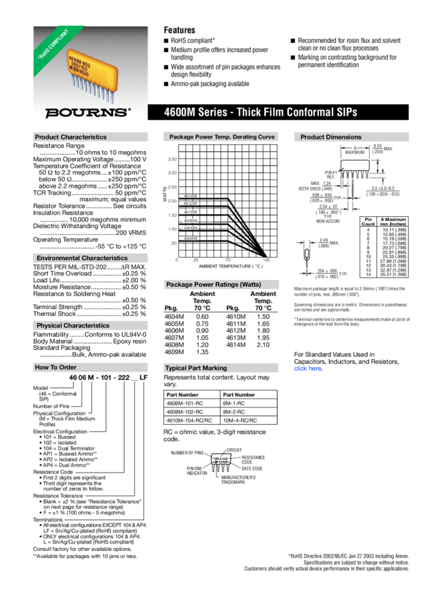 Res Thick Film NET 4.7K Ohm 2% 3/4W ±100ppm/°C BUS Conformal 6-Pin SIP Pin Thru-Hole Ammo Pack