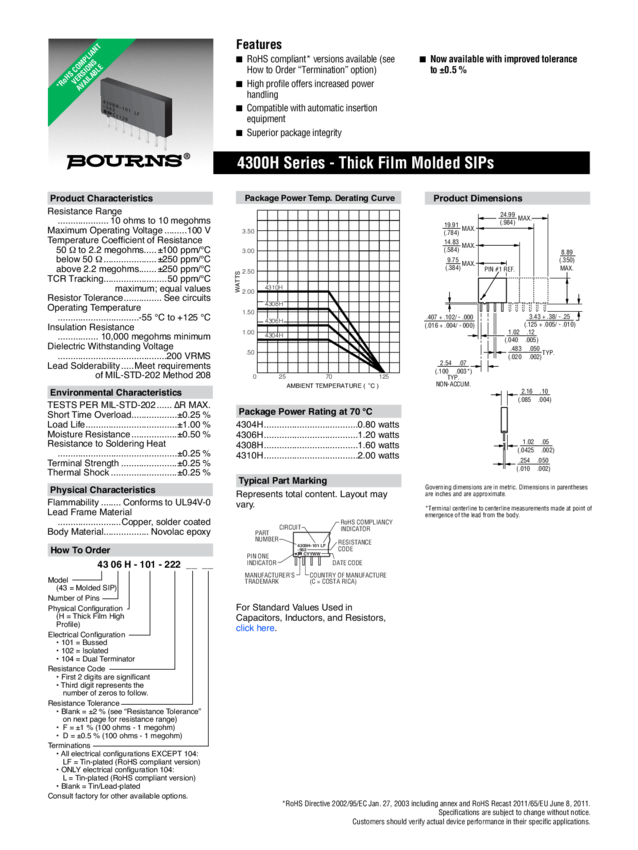 Res Thick Film NET 1K Ohm 2% 1.6W ±100ppm/°C BUS Conformal 8-Pin SIP Pin Thru-Hole Bulk