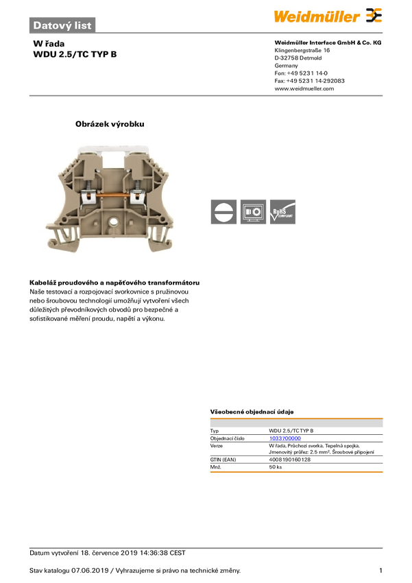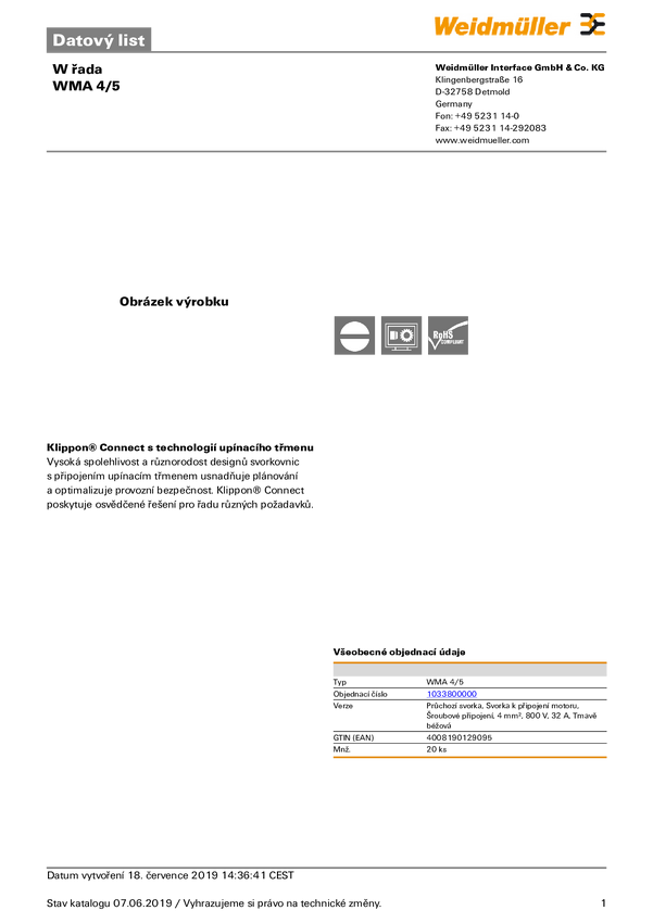 Zacisk szynowy Weidmüller 1033700000 śrubowe 50 szt.