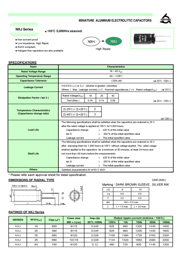 CENXE 470uF-16V /8x11,5/ Kondensator elektrolityczny 105C, LI, 3000h, RM3,5