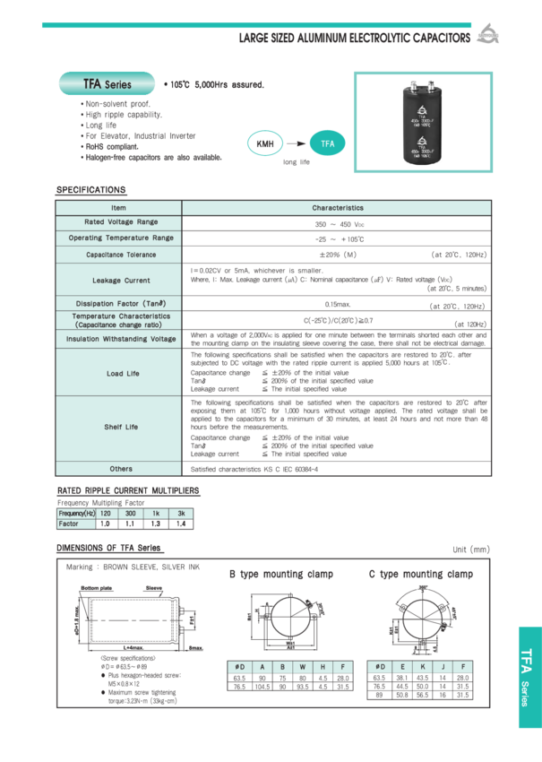 CETFA 2200uF-400V /63,5x90/ Kondensator elektrolityczny śrub.105C, 5000h