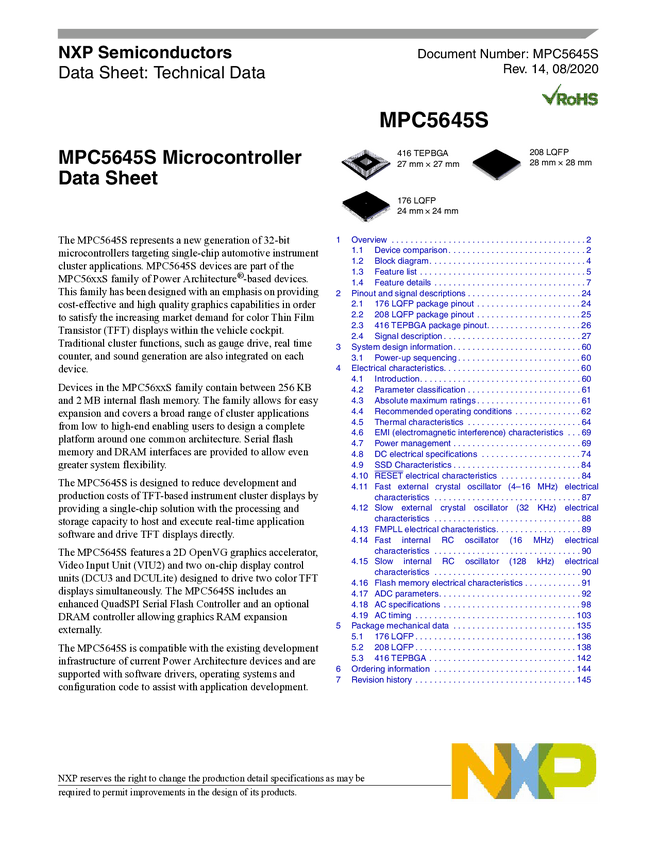 NXP 32-bit MCU, Power Arch core, 768KB Flash, 48MHz, -40/+105degC, Automotive Grade, QFP 144