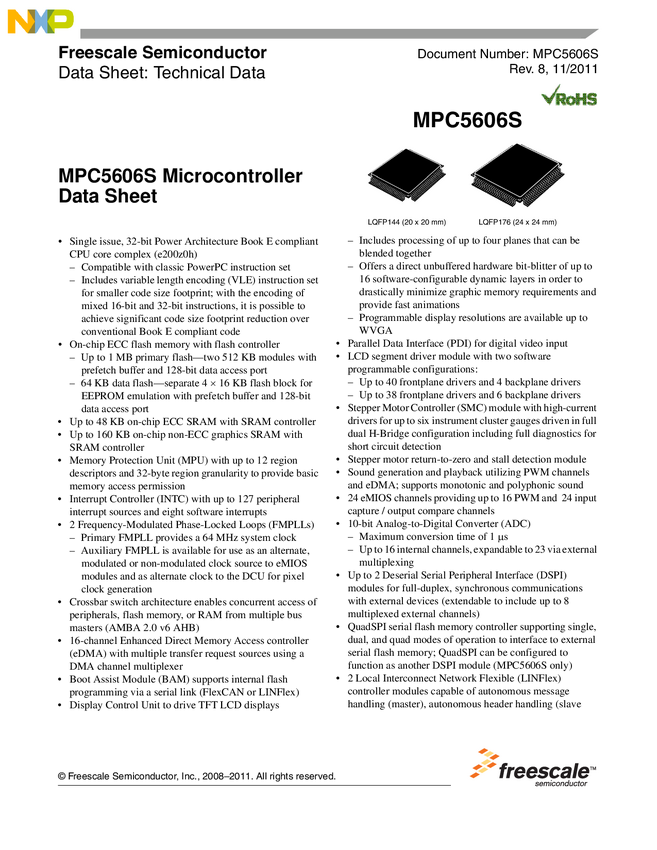 NXP 32-bit MCU, Power Arch core, 2MB Flash, 120MHz, -40/+105degC, Automotive Grade, QFP 176