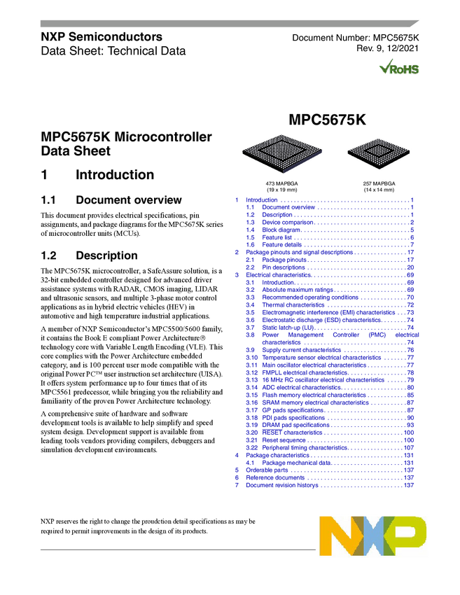 NXP 32-bit MCU, Dual Power Arch, 1MB Flash, 150MHz, -40/+105degC, Automotive Qual, MAPBGA 257