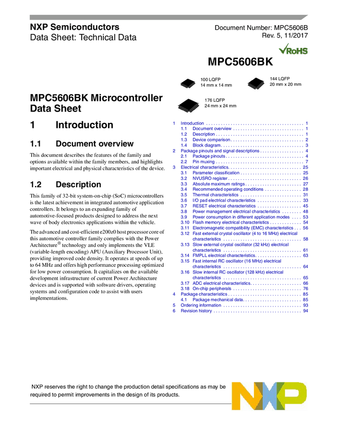 NXP 32-bit MCU, Power Arch core, 1MB Flash, 64MHz, -40/+105degC, Automotive Grade, QFP 144