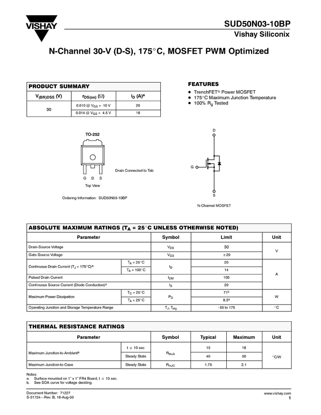 N-Channel 30-V (D-S) 175C MOSFET PWM Optimized