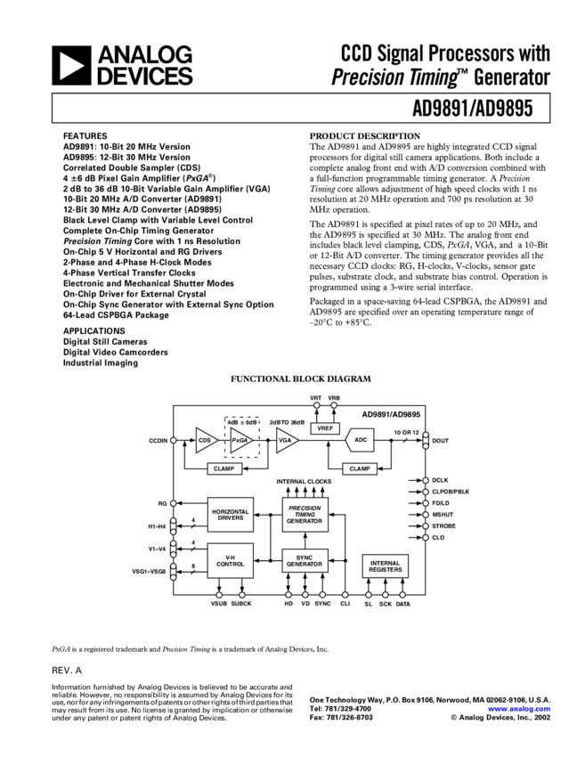 CCD Signal Processor, 20MHz 10bits, CSPBGA-64