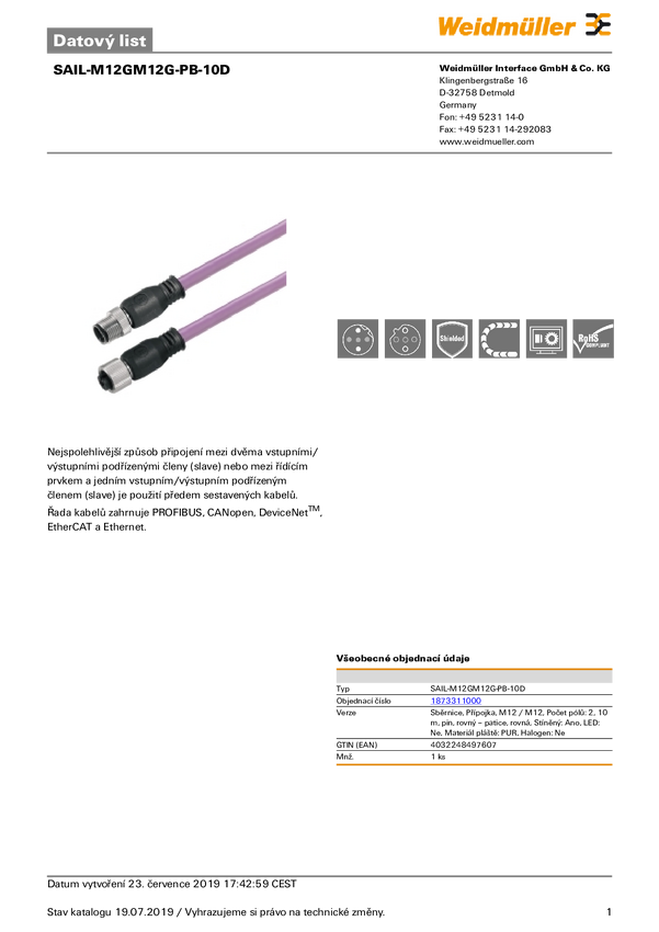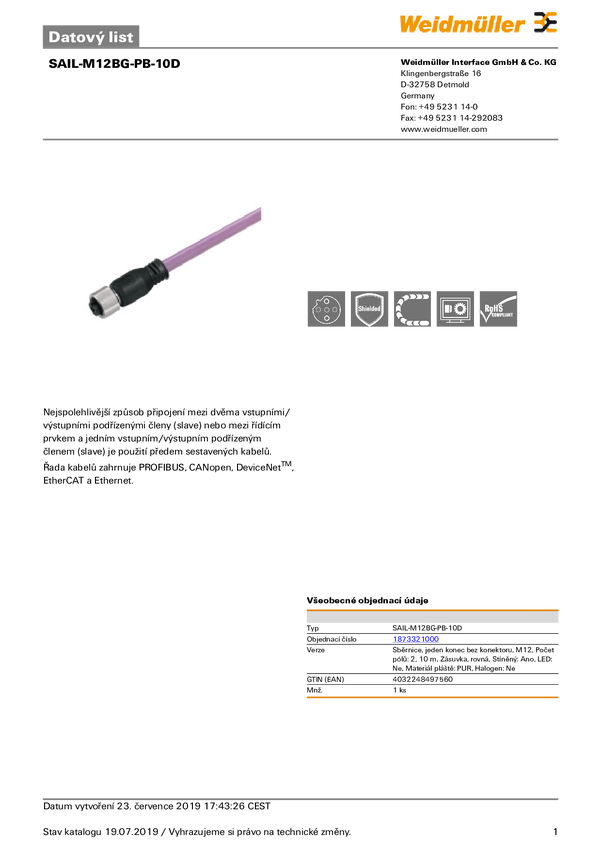Przewód połączeniowy Weidmüller SAIL-M12GM12G-PB-10D 1873311000 1 szt.