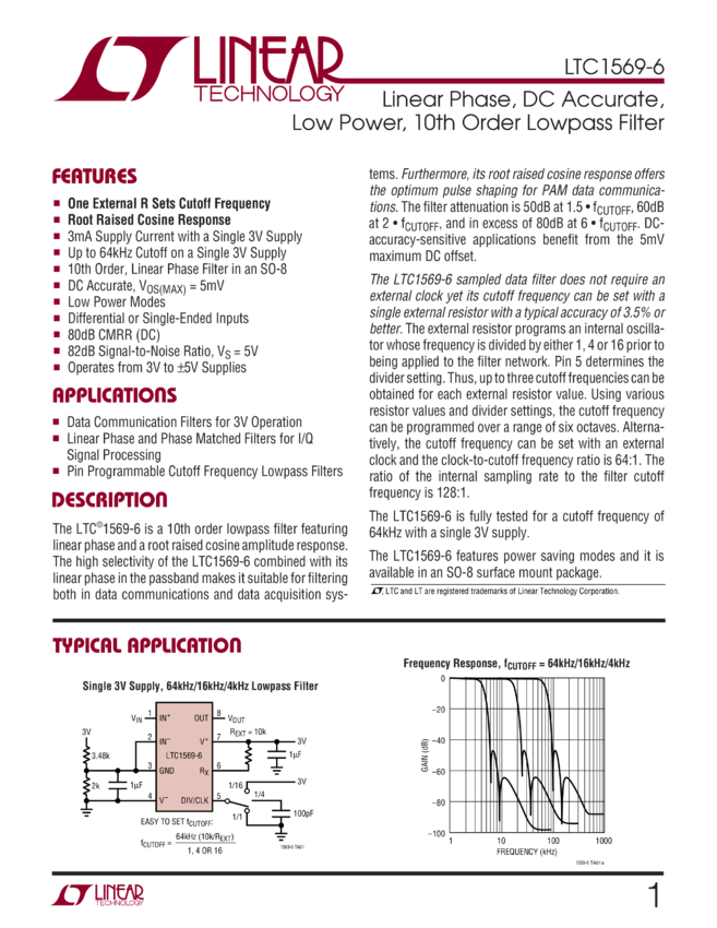 Linear Phase, DC Accurate, Tunable, 10th Order Lowpass Filter
