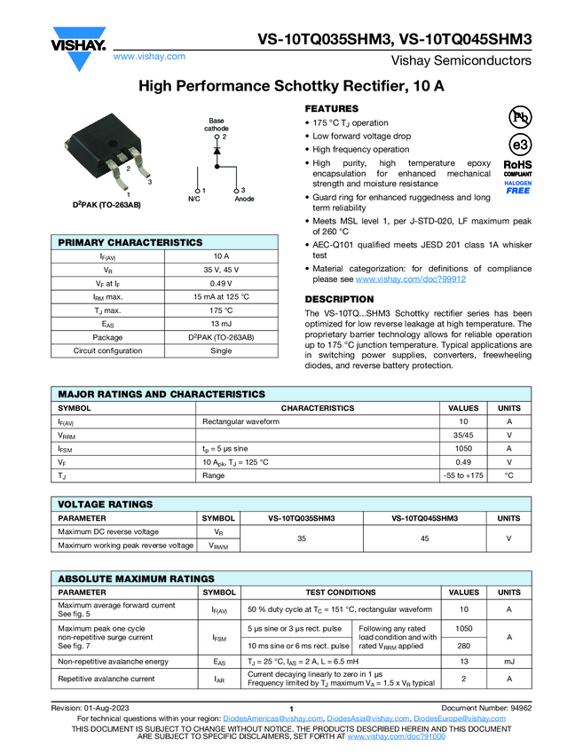Thyristor High Voltage Surface Mount Phase Control SCR, 10 A