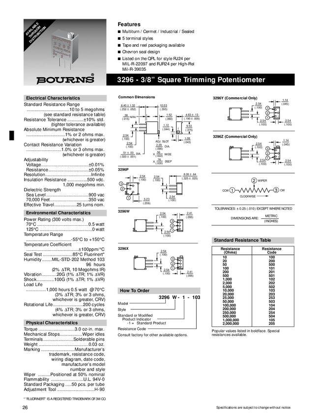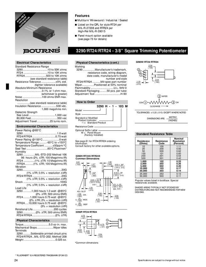 Potencjometr montażowy pionowy, śr.góra; 10x10x5 mm wyprowadzenia w jednej linii --- produkcja MEPCOPAL wojskowa RJS24FW102 rezystancja 1 Kohm zamiennik dla 3296W-1-102