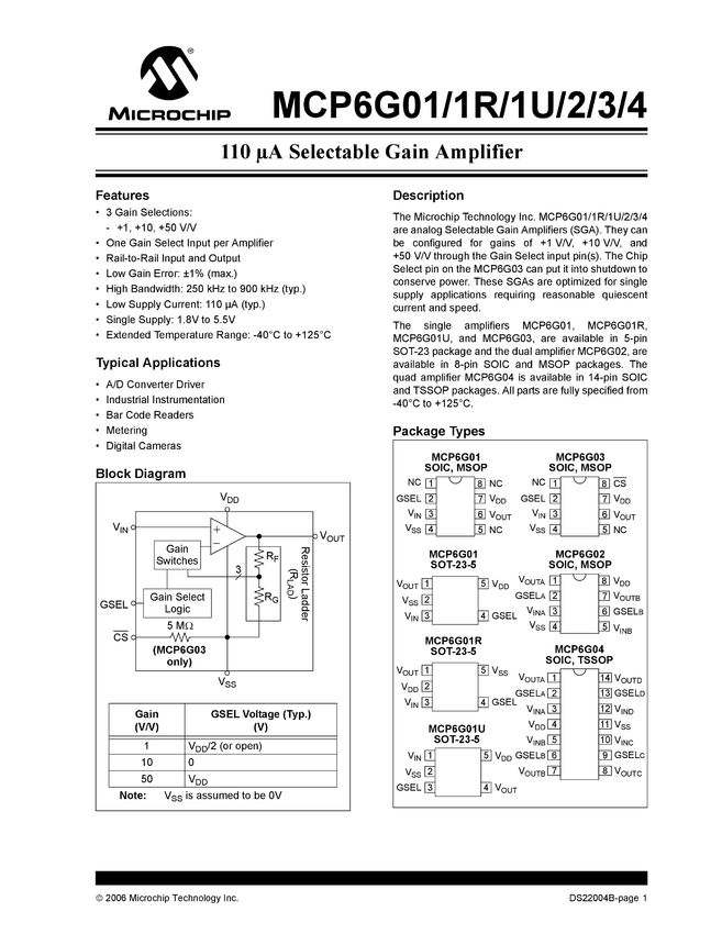 110 uA Selectable Gain Amplifier Data Sheet (12/08/2006)
