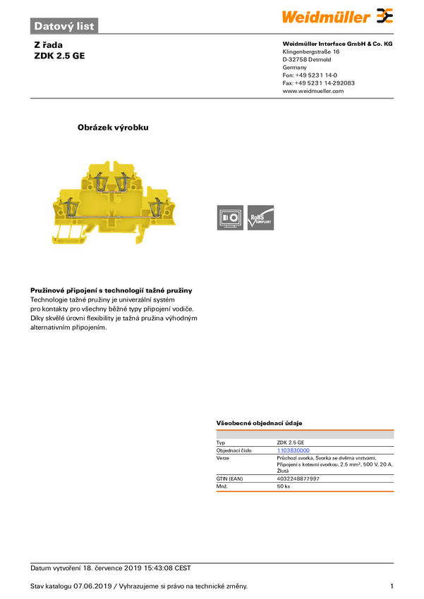 Zacisk podwójny Weidmüller 1103830000 sprężynowe 50 szt.