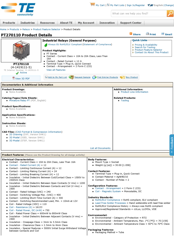 Electromechanical Relay SPDT 12A 110VDC 28.8KOhm Through Hole