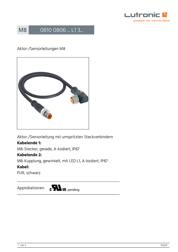 Przewód połączeniowy do czujników/elementów wykonawczych, złącze M8 Lumberg Automation RKMWV/LED A 3-06/5 M 11337-10 Ilo