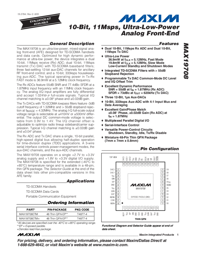 MAX19708 10-Bit, 11Msps, Ultra-Low-Power Analog Front-End