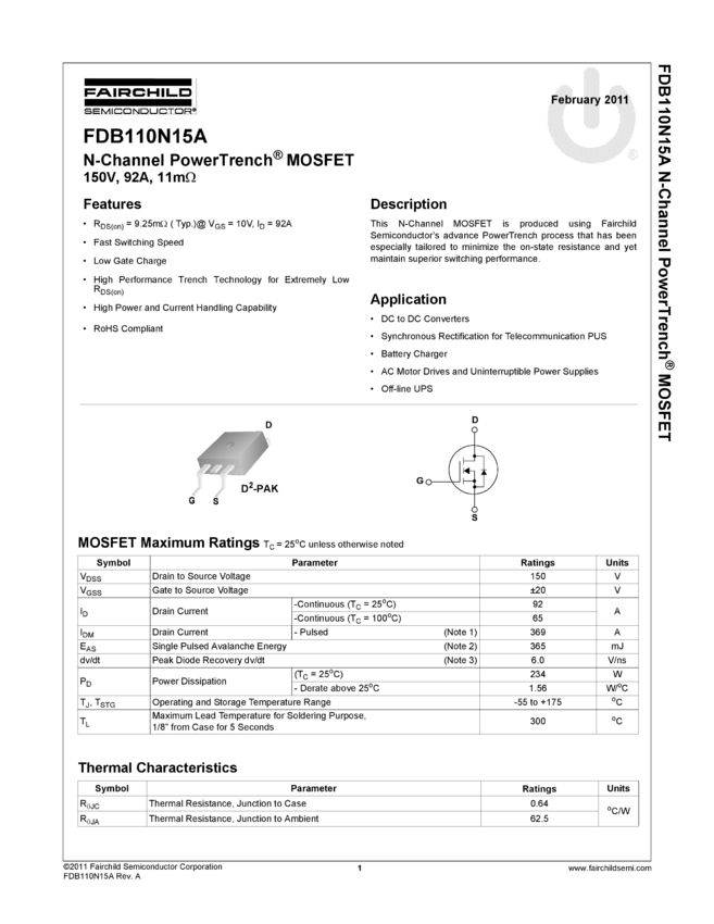 N-Channel PowerTrench® MOSFET 150V, 92A, 11mΩ