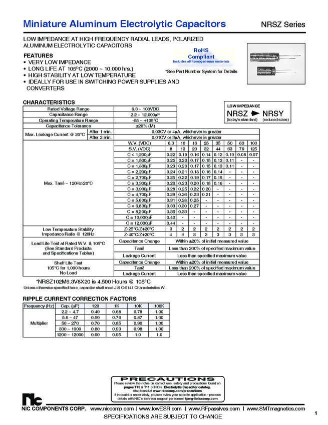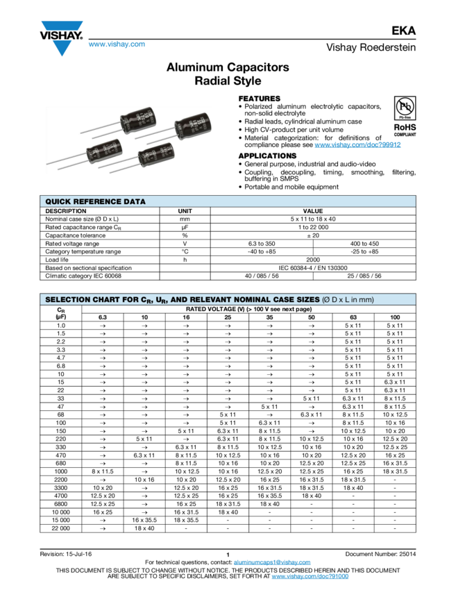 Cap Aluminum 2.2uF 63V 20% (5 X 11mm) Radial 2mm 60.3 Ohm 34mA 2000 hr 85°C