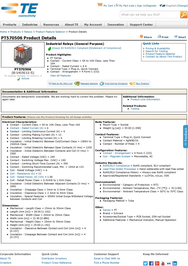 Electromechanical Relay 4PDT 12A 6VAC 11Ohm Plug-In