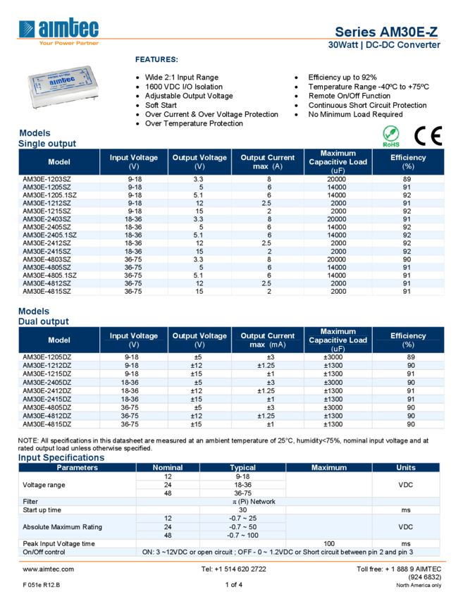 Module DC-DC 1-OUT 12V 2.5A 30W Bulk