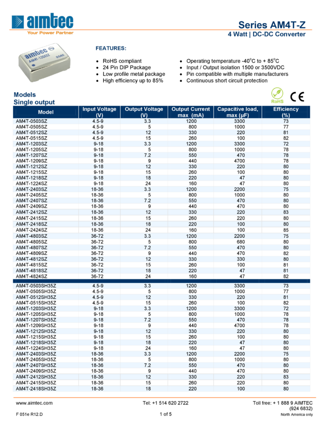Module DC-DC 1-OUT 12V 0.083A 1W 4-Pin DIP