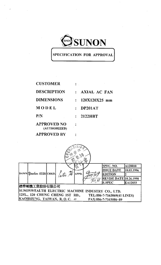 Wentylator 230V 120x38 KU S 165m3/h wtyczka; łożysko kulkowe 45dBA; I=0,14A; P-22W; 2850 obr/min podobny wentylator to A2123-HBT, kabelek z wtyczką LFTK01 sprzedawany oddzielnie Nadruk DP200A 2123XBT.GN DP200A 2123XBT.GN 220-240V - 50/60hz 0,14/0,12AMP Impedance protected