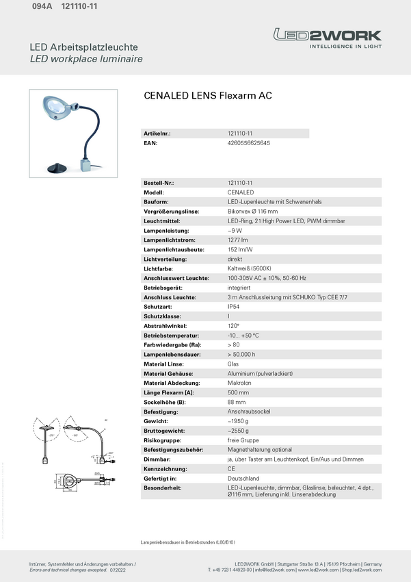 LED2WORK Lampka z elastycznym ramieniem Cenaled lens 9 W 1277 lm 120 ° 1 szt.