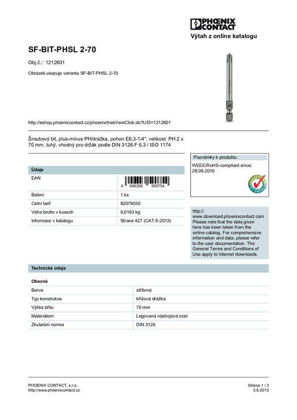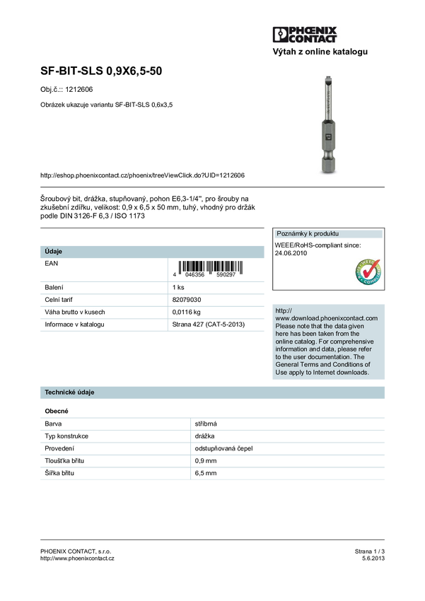 Bit płaski Phoenix Contact 1212606 5 szt.
