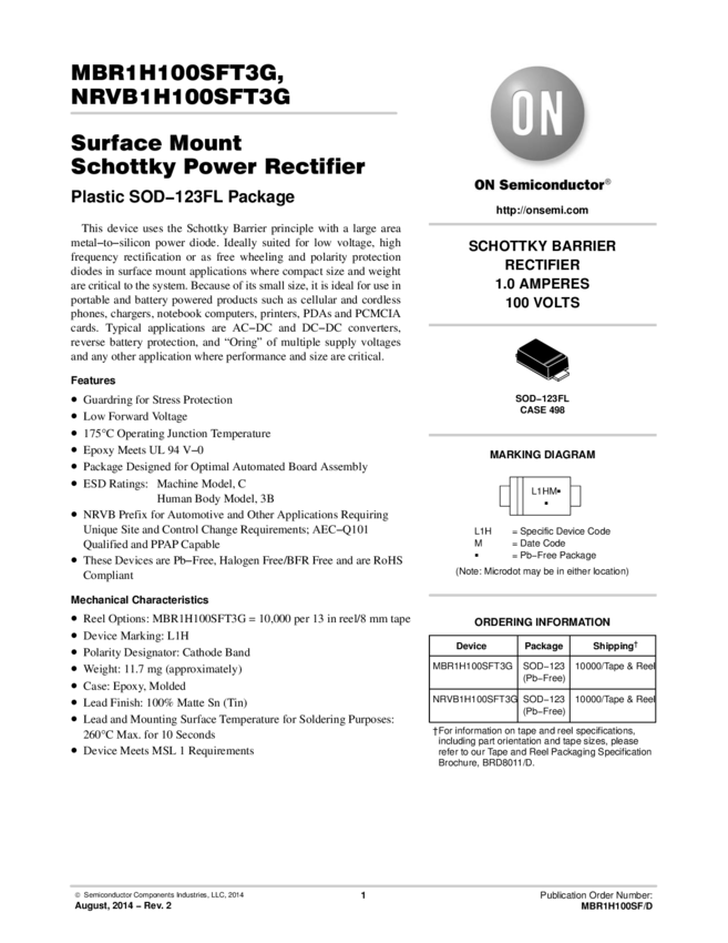 Diode Schottky 100V 1A 2-Pin SOD-123FL T/R