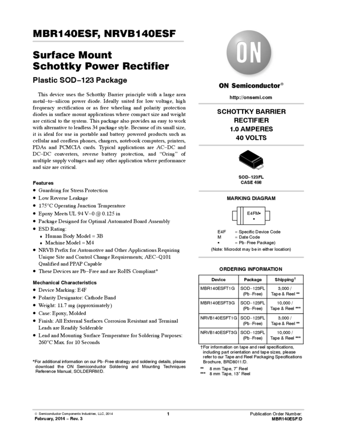 Diode Schottky 40V 1A 2-Pin SOD-123FL T/R