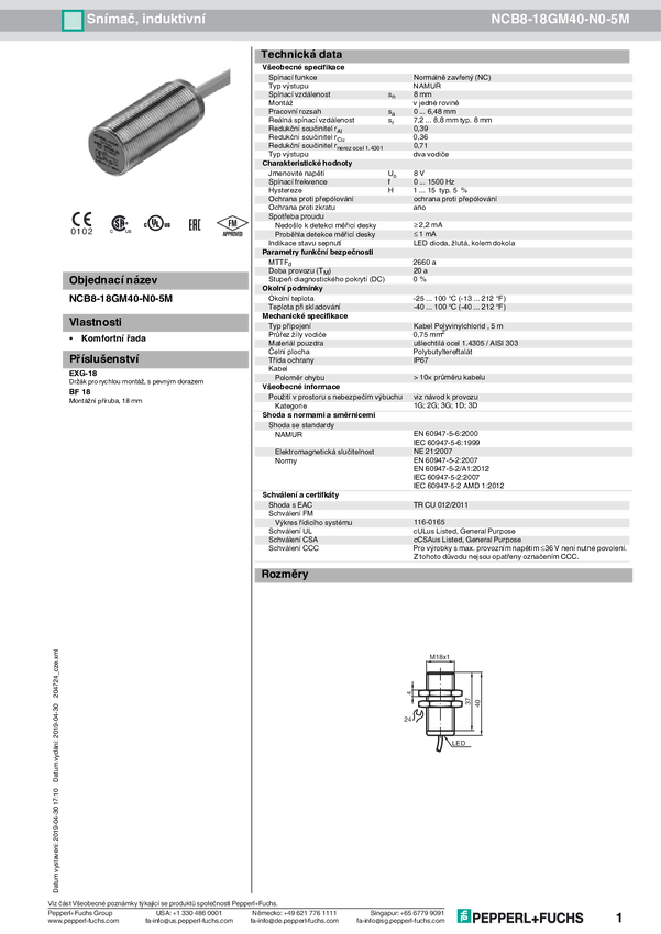 Czujnik indukcyjny Pepperl+Fuchs NCB8-18GM40-N0 123Gxx3D 70133058 1 szt.