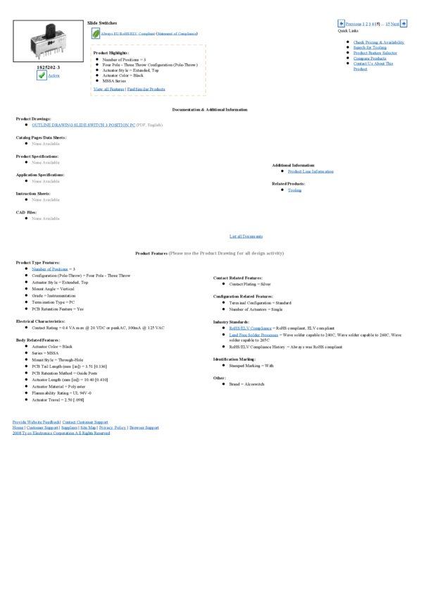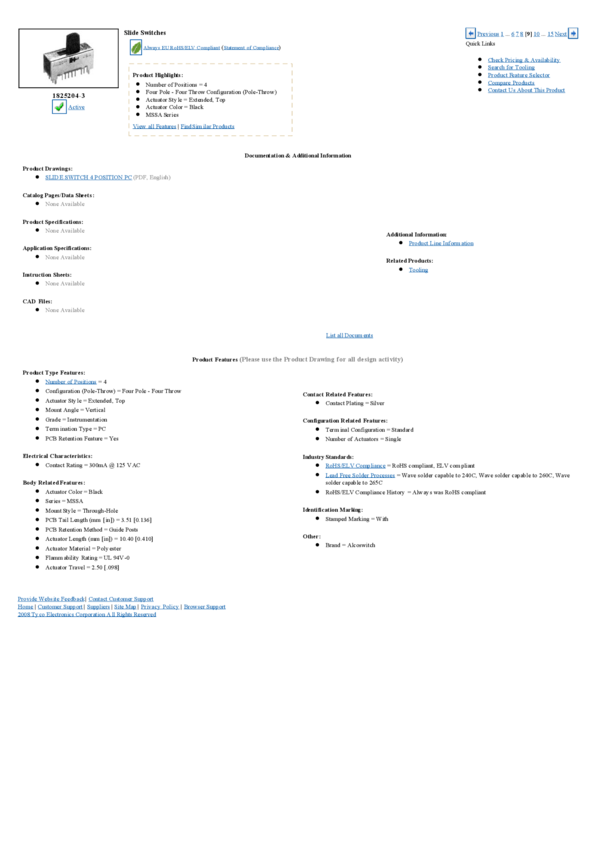 Switch Slide 4P4T Extended Top Slide 0.3A 125VAC PC Pins Bracket Mount/Through Hole