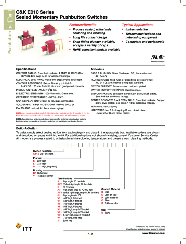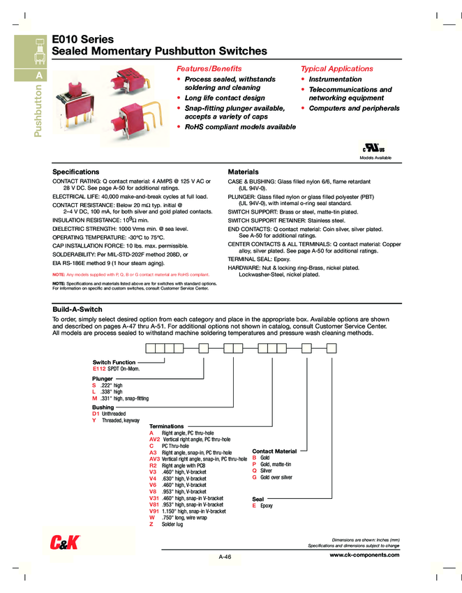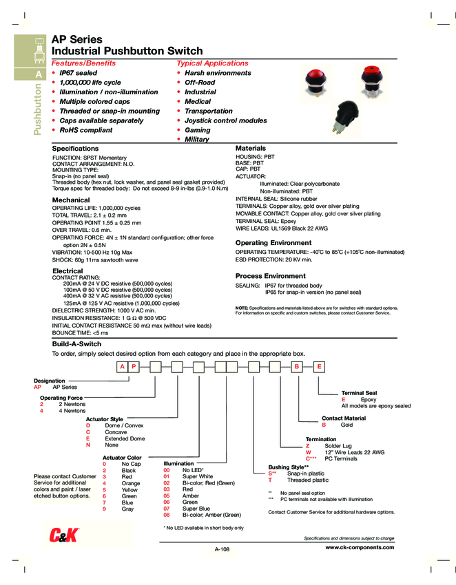 Switch Push Button ON Mom SPDT Round Plunger 4A 125VAC 28VDC Momentary Contact PC Pins Bracket Mount/Through Hole
