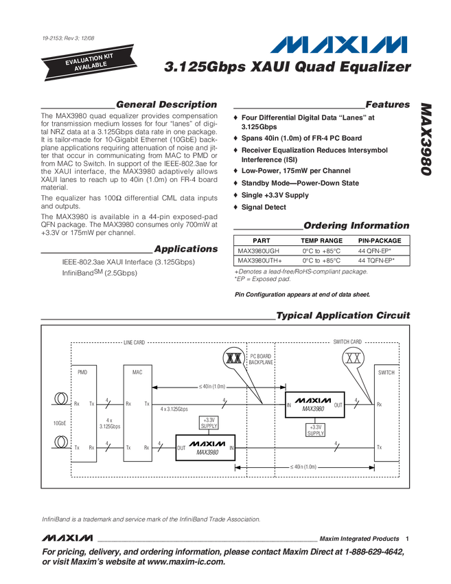DC-Coupled, UCSP 3.125Gbps Equalizer