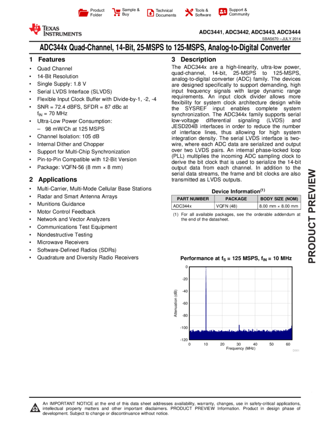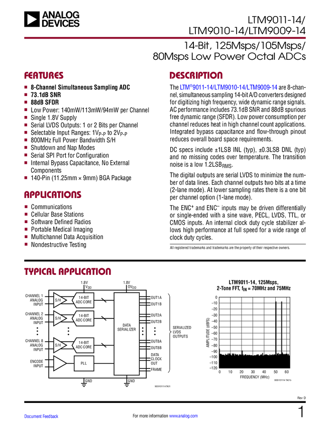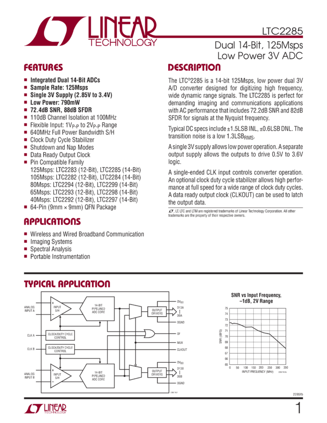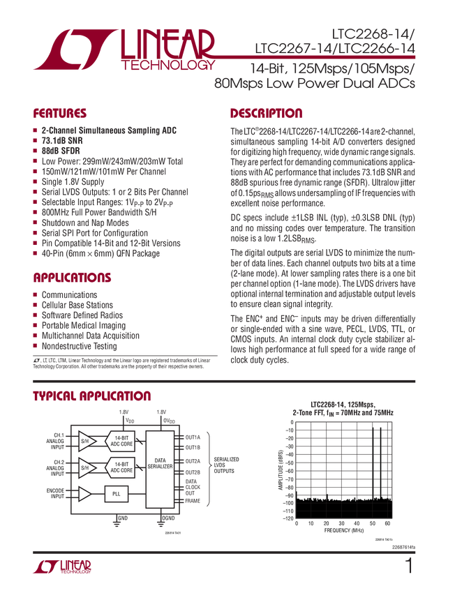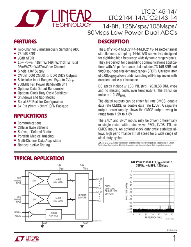 Dual 14-Bit, 125Msps Low Power 3V ADC